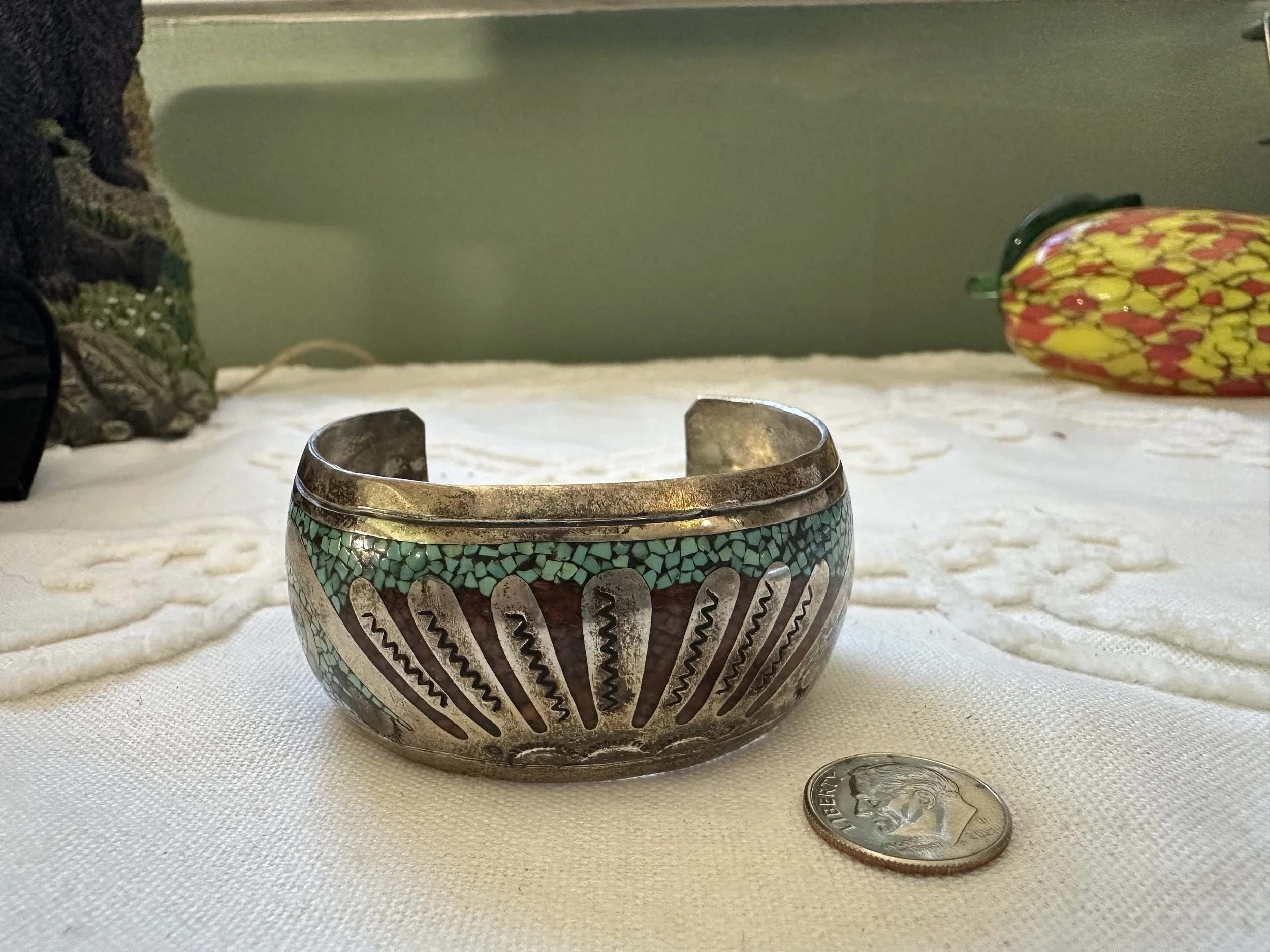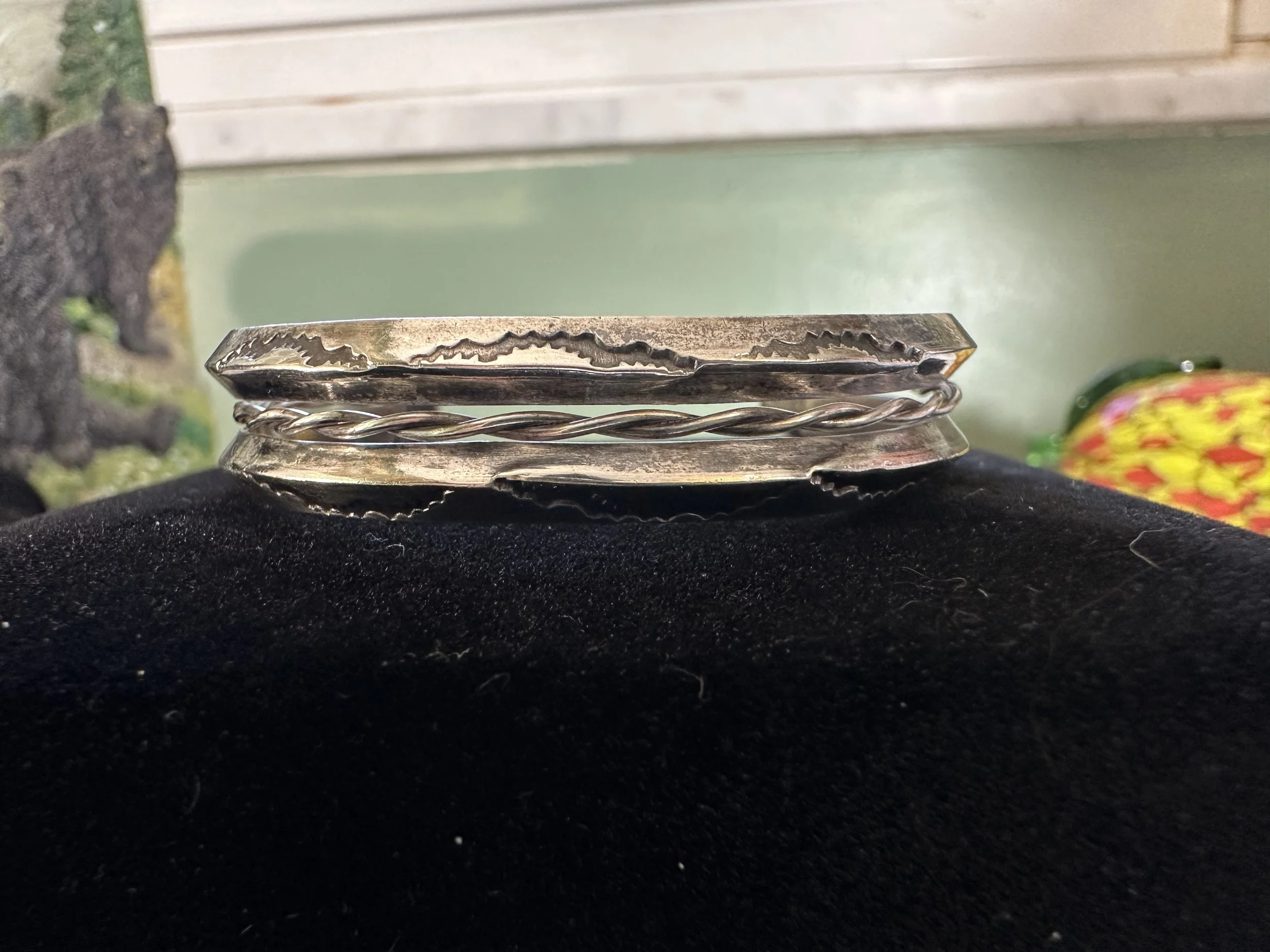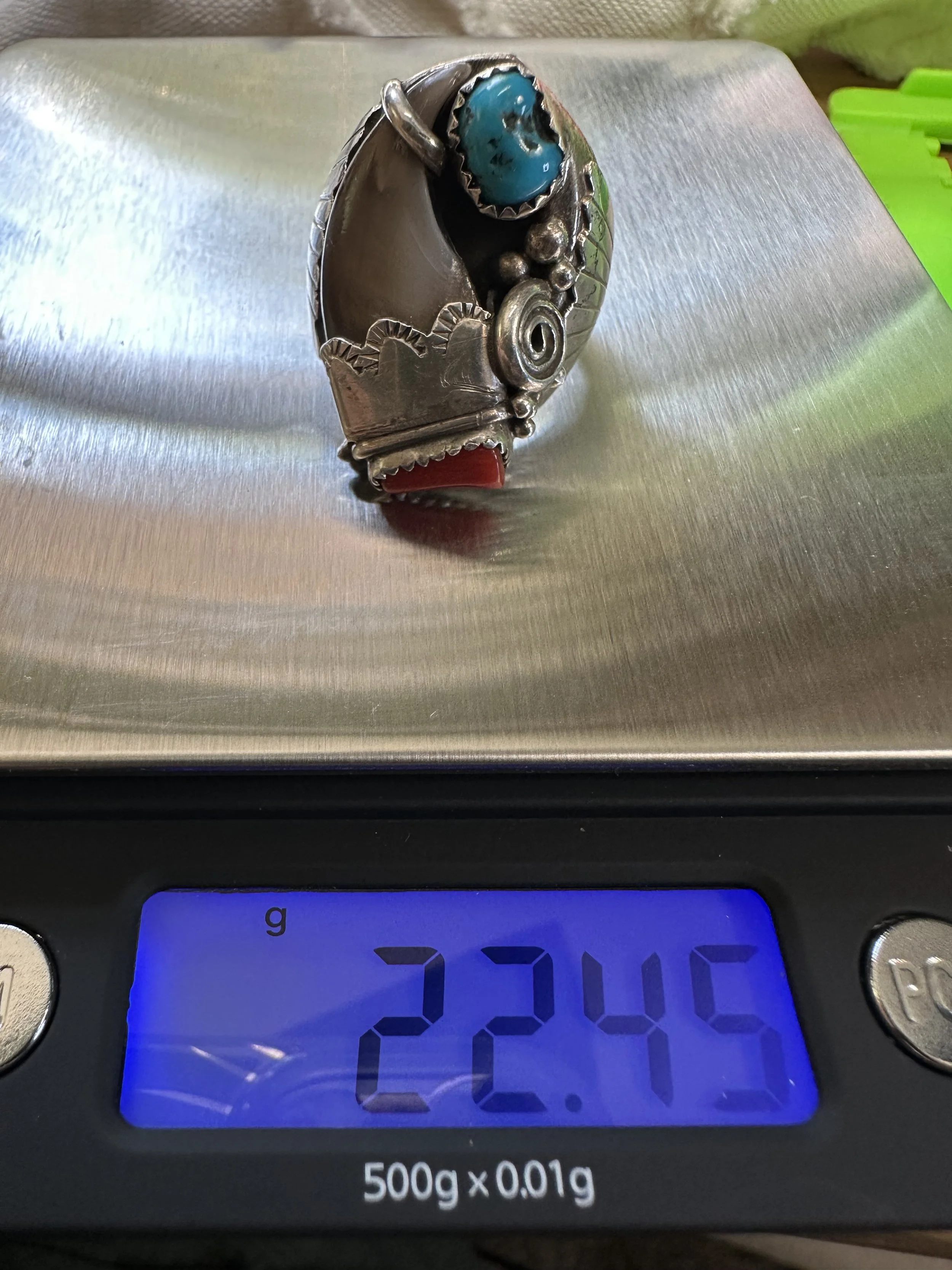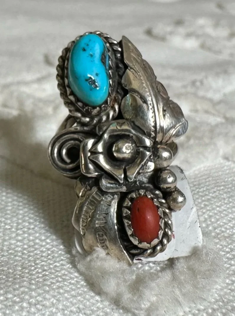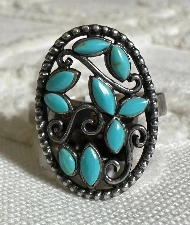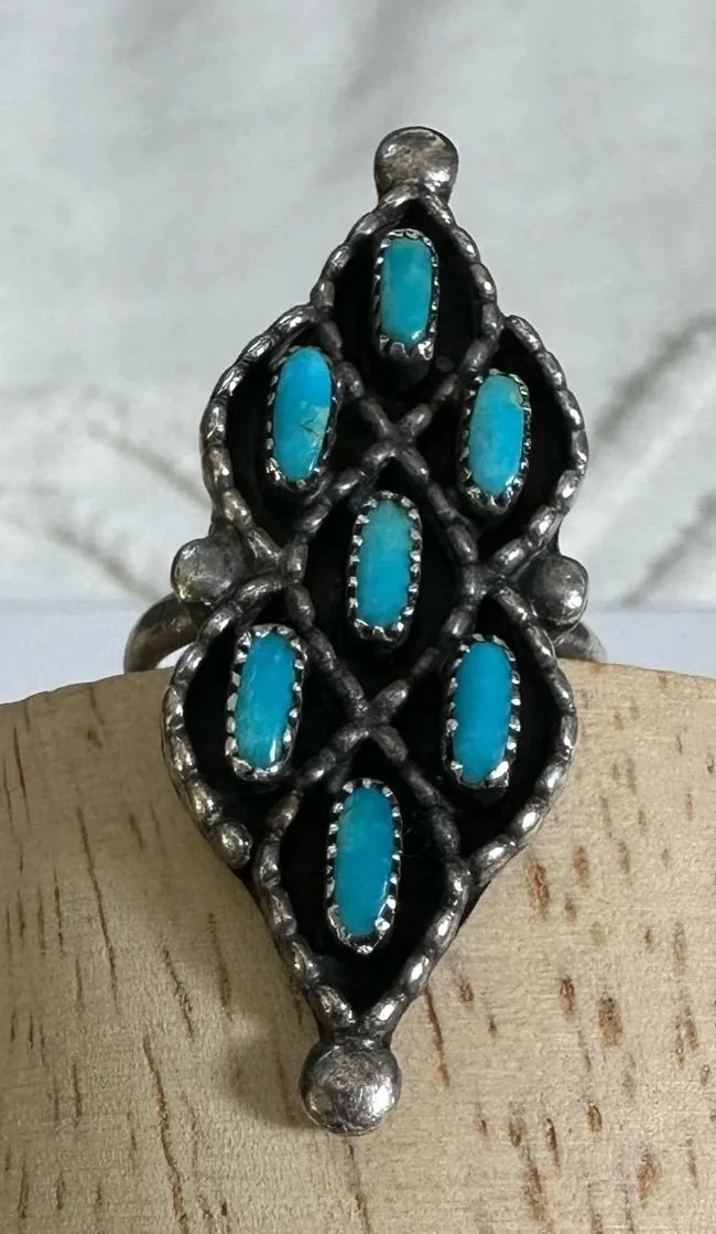 Shop the collection Categories: Select a Category Stamped MOP Squash Bolo Claw Beaded Pendant Opal Fetish White Buffalo Onyx Lapis Lazuli Carnelian Abalone Spiny Oyster Green Turquoise Coral Turquoise Sterling Cuff Bracelet Necklace Ring Earrings Hopi Zuni Navajo Native American Store Stamped | MOP | Squash | Bolo | Claw | Beaded | Pendant | Opal | Fetish | White Buffalo | Onyx | Lapis Lazuli | Carnelian | Abalone | Spiny Oyster | Green Turquoise | Coral | Turquoise | Sterling | Cuff | Bracelet | Necklace | Ring | Earrings | Hopi | Zuni | Navajo | Native American | Sterling Silver Vintage Navajo Crushed Turquoise & Coral Cuff with Makers Mark $400.00 Add To Cart Added! Sterling Silver Stamped Cuff Bracelet $110.00 Add To Cart Added! Handcrafted Sterling Silver Ring with Turquoise Stones & Makers Mark $130.00 Add To Cart Added! Sterling Silver Shadowbox Coral & Turquoise Ring $150.00 Add To Cart Added! Blue Green Turquoise & Leaf Accent Sterling Silver Ring $200.00 Add To Cart Added! Antique Decorative Sterling Silver Ring with Green Turquoise Stone $275.00 Add To Cart Added! Green Turquoise Stone with Sterling Silver Leaf Details & Makers Mark $175.00 Add To Cart Added! Large Green Turquoise with Stamped Sterling Silver $250.00 Add To Cart Added! Unique Green Turquoise with Detailed Sterling Silver Border and Band $150.00 Add To Cart Added! Detailed Sterling Silver Heavy Ring with Stamped Band and Green Turquoise $150.00 Add To Cart Added! Vintage Sterling Silver Turquoise and Coral Ring with Makers Mark $180.00 Add To Cart Added! Sterling Silver Zuni Shadowbox Cluster Ring $250.00 Add To Cart Added! Sterling Silver Feather Detail Ring with Turquoise and Aquamarine Stones & Makers Mark $125.00 Add To Cart Added! Vintage Paisley Sterling Silver Rope Ring with Turquoise Stones $150.00 Add To Cart Added! Detailed Vintage Sterling Silver Flower Leaf Turquoise & Coral Ring with Makers Mark $150.00 Add To Cart Added! Sterling Silver Vintage Dome Ring with Green Turquoise Stone $100.00 Add To Cart Added! Vintage Inlay Zuni Onyx Turquoise MOP Sterling Silver Ring with Makers Mark $100.00 Add To Cart Added! Vintage Zuni Green Turquoise Sterling $75.00 Add To Cart Added! Detailed Sterling Silver Scroll With Large Turquoise Stone $200.00 Add To Cart Added! Stamped Sterling Silver Green Turquoise Ring $125.00 Add To Cart Added! Turquoise Coral Inlay Sterling Silver Ring with Makers Mark $100.00 Add To Cart Added! Vintage Turquoise Coral Flower & Leaf Sterling Ring $225.00 Add To Cart Added! Heavy Sterling Silver Turquoise & Coral Ring With Claw $450.00 Add To Cart Added! Single Claw with Two Turquoise & Coral Stone Sterling Silver Bolo Tie $500.00 Add To Cart Added! Sterling Silver Hand Stamped Vintage Navajo Bench Beads $1,000.00 Add To Cart Added! Sterling Silver Pendant with Genuine Turquoise with Makers Mark $250.00 Add To Cart Added! Scalloped Edge Sterling Silver Abalone Ring $90.00 Add To Cart Added! Large Turquoise & Sterling Silver Ring $100.00 Add To Cart Added! Sterling Silver Vintage Native American Turquoise Bib Necklace with Makers Mark $800.00 Add To Cart Added! Vintage Navajo Sterling Silver Choker Squash with Turquoise Adornment $1,000.00 Add To Cart Added! Vintage Green Turquoise Rectangular Cluster Necklace $2,200.00 Add To Cart Added! Sterling Silver Vintage Stamped Choker & Large Turquoise Stone with Makers Mark $1,200.00 Add To Cart Added! Detailed Scalloped Edge Sterling Silver Ring & Large Turquoise Stone with Makers Mark $225.00 Add To Cart Added! Sterling Silver Vintage Hopi Man in the Maze Reversible Pendant with Makers Mark $1,000.00 Add To Cart Added! Reversible Vintage Sterling Silver Pendant with Coral & Turquoise Stones $250.00 Add To Cart Added! Sterling Silver Leaf & Turquoise Pendant with Makers Mark $250.00 Add To Cart Added! Sterling Silver Three Strand Beaded Necklace with Fluted, Saucer and Round Beads $650.00 Add To Cart Added! Graduated Rondelle Green Gemstone Necklace with Sterling Silver Cones and Hook Closure $300.00 Add To Cart Added! Sterling Silver Turquoise Coral & Dual Claw Bolo Tie $650.00 Add To Cart Added! Scalloped Leaf Link Sterling Silver Necklace with Turquoise $500.00 Add To Cart Added! Sterling Pendant with Teardrop Blue Stones $200.00 Add To Cart Added! Orange Spiny Oyster Pendant Surrounded by Opal & Onyx $120.00 Add To Cart Added! Single Strand Fetish Necklace with Turquoise $300.00 Add To Cart Added! Sterling Silver White Buffalo Pendant $300.00 Add To Cart Added! Sterling Silver Buffalo Necklace $200.00 Add To Cart Added!