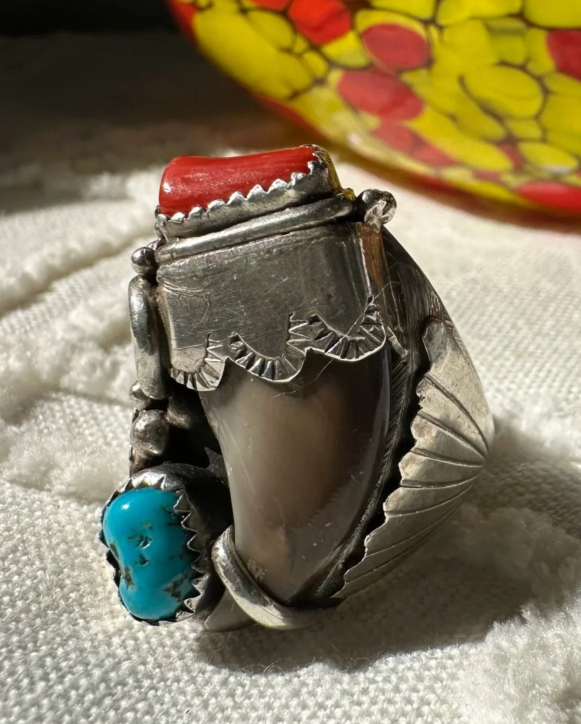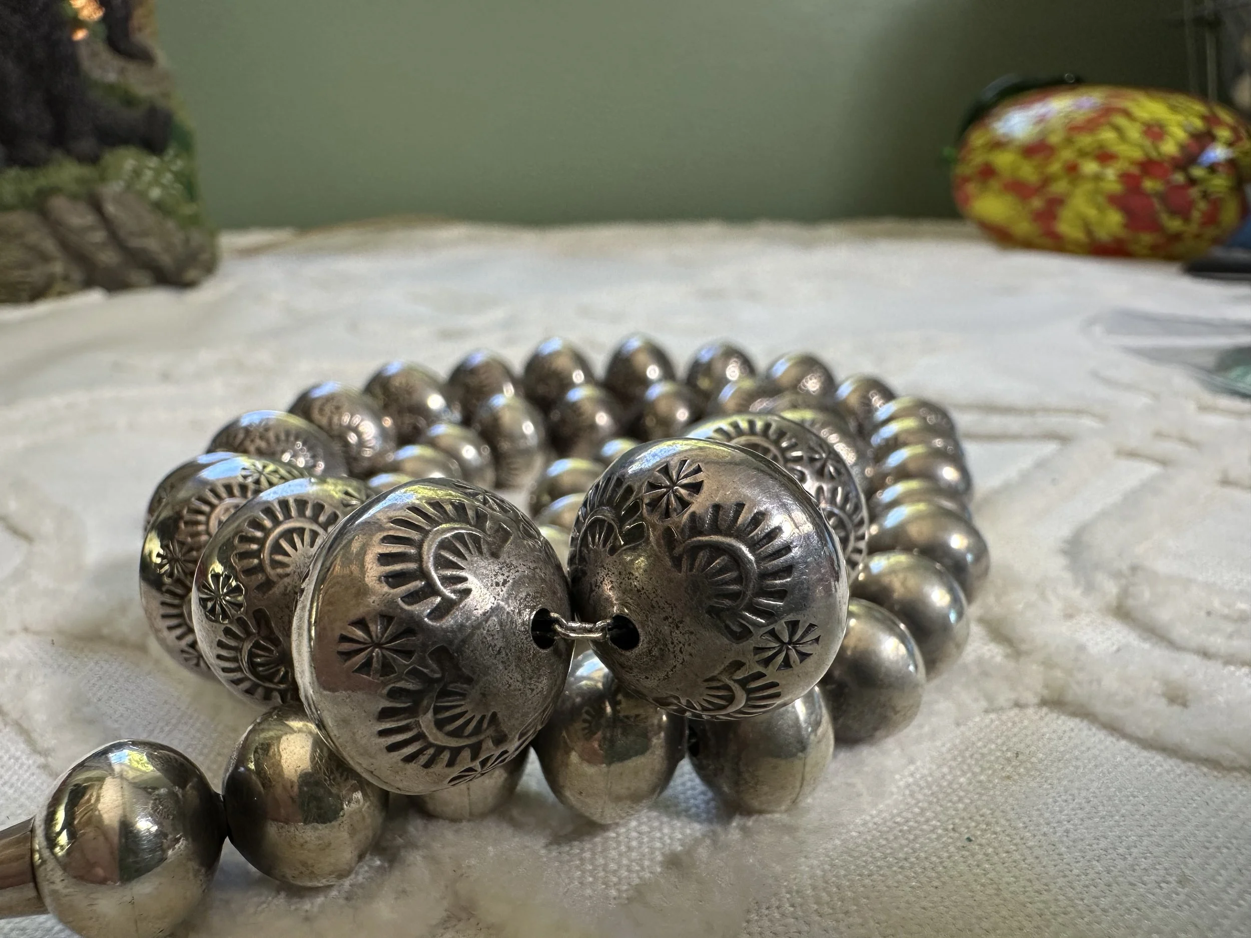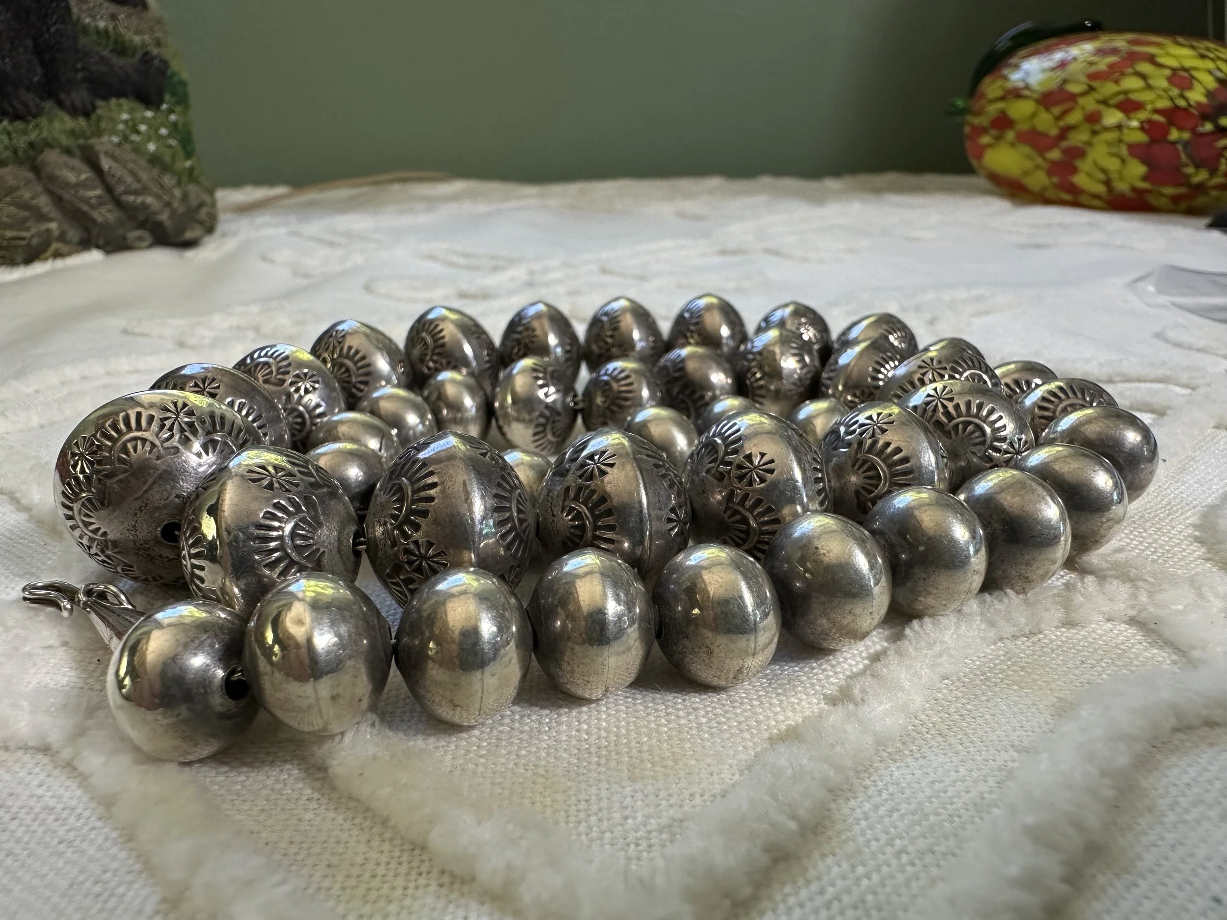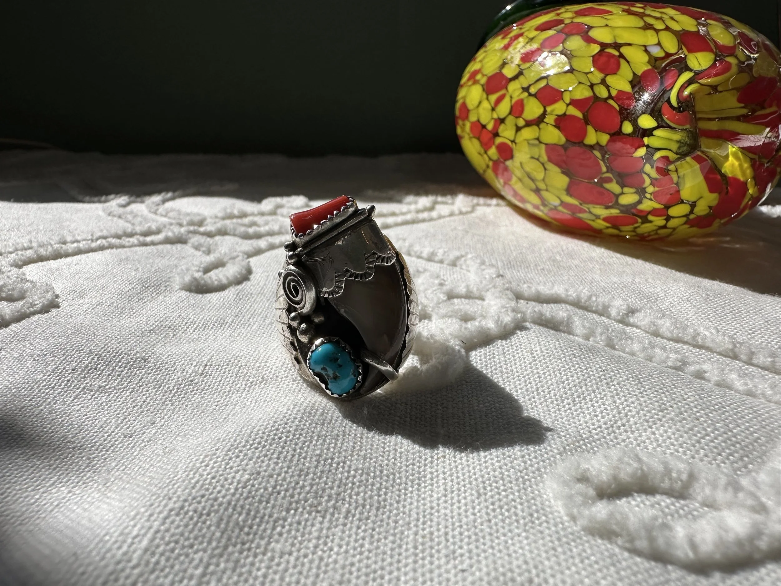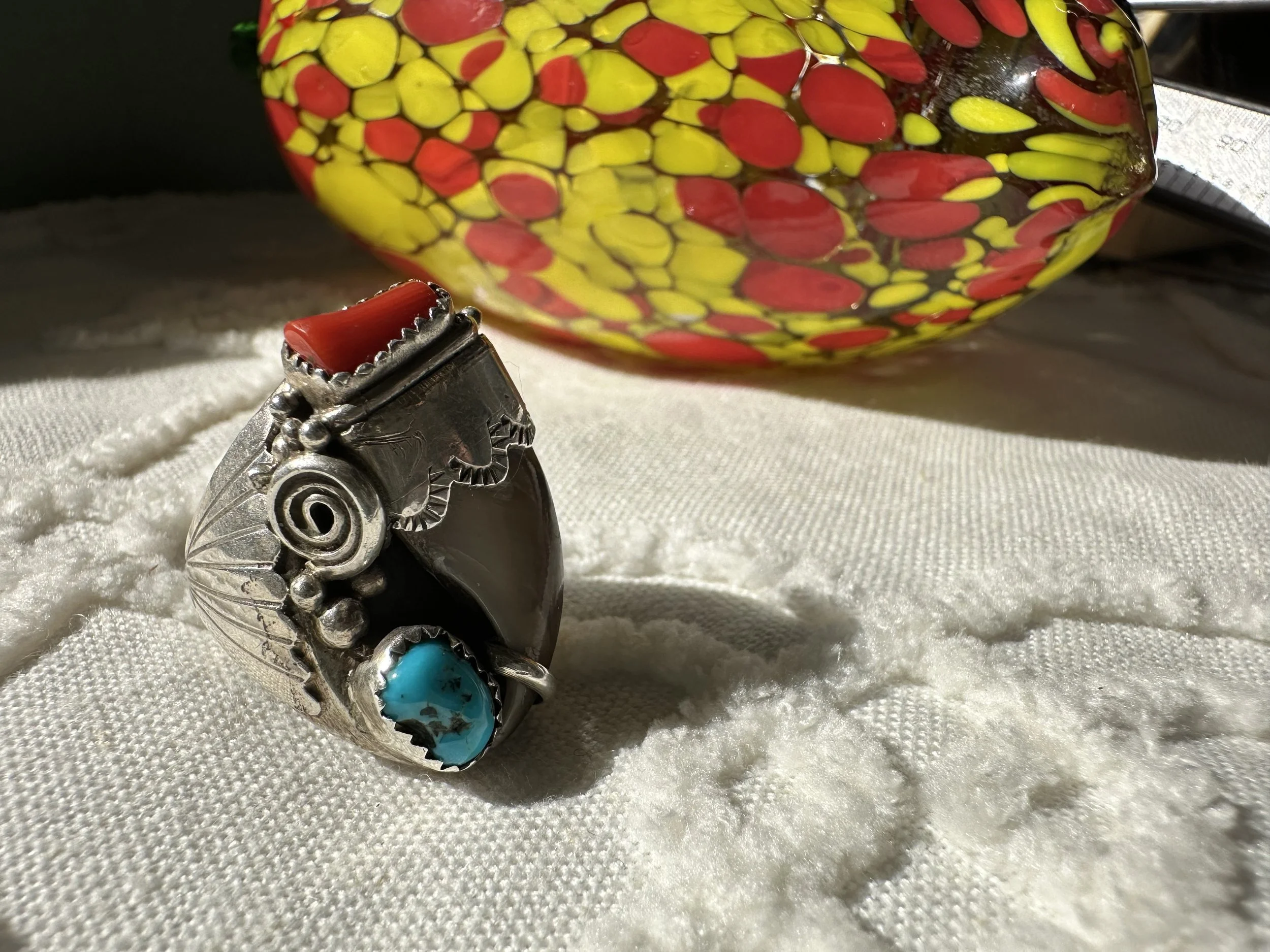 Shop the collection Categories: Select a Category Stamped MOP Squash Bolo Claw Beaded Pendant Opal Fetish White Buffalo Onyx Lapis Lazuli Carnelian Abalone Spiny Oyster Green Turquoise Coral Turquoise Sterling Cuff Bracelet Necklace Ring Earrings Hopi Zuni Navajo Native American Store Stamped | MOP | Squash | Bolo | Claw | Beaded | Pendant | Opal | Fetish | White Buffalo | Onyx | Lapis Lazuli | Carnelian | Abalone | Spiny Oyster | Green Turquoise | Coral | Turquoise | Sterling | Cuff | Bracelet | Necklace | Ring | Earrings | Hopi | Zuni | Navajo | Native American | Sterling Silver Vintage Navajo Crushed Turquoise & Coral Cuff with Makers Mark $400.00 Add To Cart Added! Sterling Silver Stamped Cuff Bracelet $110.00 Add To Cart Added! Handcrafted Sterling Silver Ring with Turquoise Stones & Makers Mark $130.00 Add To Cart Added! Sterling Silver Shadowbox Coral & Turquoise Ring $150.00 Add To Cart Added! Blue Green Turquoise & Leaf Accent Sterling Silver Ring $200.00 Add To Cart Added! Antique Decorative Sterling Silver Ring with Green Turquoise Stone $275.00 Add To Cart Added! Green Turquoise Stone with Sterling Silver Leaf Details & Makers Mark $175.00 Add To Cart Added! Large Green Turquoise with Stamped Sterling Silver $250.00 Add To Cart Added! Unique Green Turquoise with Detailed Sterling Silver Border and Band $150.00 Add To Cart Added! Detailed Sterling Silver Heavy Ring with Stamped Band and Green Turquoise $150.00 Add To Cart Added! Vintage Sterling Silver Turquoise and Coral Ring with Makers Mark $180.00 Add To Cart Added! Sterling Silver Zuni Shadowbox Cluster Ring $250.00 Add To Cart Added! Sterling Silver Feather Detail Ring with Turquoise and Aquamarine Stones & Makers Mark $125.00 Add To Cart Added! Vintage Paisley Sterling Silver Rope Ring with Turquoise Stones $150.00 Add To Cart Added! Detailed Vintage Sterling Silver Flower Leaf Turquoise & Coral Ring with Makers Mark $150.00 Add To Cart Added! Sterling Silver Vintage Dome Ring with Green Turquoise Stone $100.00 Add To Cart Added! Vintage Inlay Zuni Onyx Turquoise MOP Sterling Silver Ring with Makers Mark $100.00 Add To Cart Added! Vintage Zuni Green Turquoise Sterling $75.00 Add To Cart Added! Detailed Sterling Silver Scroll With Large Turquoise Stone $200.00 Add To Cart Added! Stamped Sterling Silver Green Turquoise Ring $125.00 Add To Cart Added! Turquoise Coral Inlay Sterling Silver Ring with Makers Mark $100.00 Add To Cart Added! Vintage Turquoise Coral Flower & Leaf Sterling Ring $225.00 Add To Cart Added! Heavy Sterling Silver Turquoise & Coral Ring With Claw $450.00 Add To Cart Added! Single Claw with Two Turquoise & Coral Stone Sterling Silver Bolo Tie $500.00 Add To Cart Added! Sterling Silver Hand Stamped Vintage Navajo Bench Beads $1,000.00 Add To Cart Added! Sterling Silver Pendant with Genuine Turquoise with Makers Mark $250.00 Add To Cart Added! Scalloped Edge Sterling Silver Abalone Ring $90.00 Add To Cart Added! Large Turquoise & Sterling Silver Ring $100.00 Add To Cart Added! Sterling Silver Vintage Native American Turquoise Bib Necklace with Makers Mark $800.00 Add To Cart Added! Vintage Navajo Sterling Silver Choker Squash with Turquoise Adornment $1,000.00 Add To Cart Added! Vintage Green Turquoise Rectangular Cluster Necklace $2,200.00 Add To Cart Added! Sterling Silver Vintage Stamped Choker & Large Turquoise Stone with Makers Mark $1,200.00 Add To Cart Added! Detailed Scalloped Edge Sterling Silver Ring & Large Turquoise Stone with Makers Mark $225.00 Add To Cart Added! Sterling Silver Vintage Hopi Man in the Maze Reversible Pendant with Makers Mark $1,000.00 Add To Cart Added! Reversible Vintage Sterling Silver Pendant with Coral & Turquoise Stones $250.00 Add To Cart Added! Sterling Silver Leaf & Turquoise Pendant with Makers Mark $250.00 Add To Cart Added! Sterling Silver Three Strand Beaded Necklace with Fluted, Saucer and Round Beads $650.00 Add To Cart Added! Graduated Rondelle Green Gemstone Necklace with Sterling Silver Cones and Hook Closure $300.00 Add To Cart Added! Sterling Silver Turquoise Coral & Dual Claw Bolo Tie $650.00 Add To Cart Added! Scalloped Leaf Link Sterling Silver Necklace with Turquoise $500.00 Add To Cart Added! Sterling Pendant with Teardrop Blue Stones $200.00 Add To Cart Added! Orange Spiny Oyster Pendant Surrounded by Opal & Onyx $120.00 Add To Cart Added! Single Strand Fetish Necklace with Turquoise $300.00 Add To Cart Added! Sterling Silver White Buffalo Pendant $300.00 Add To Cart Added! Sterling Silver Buffalo Necklace $200.00 Add To Cart Added!